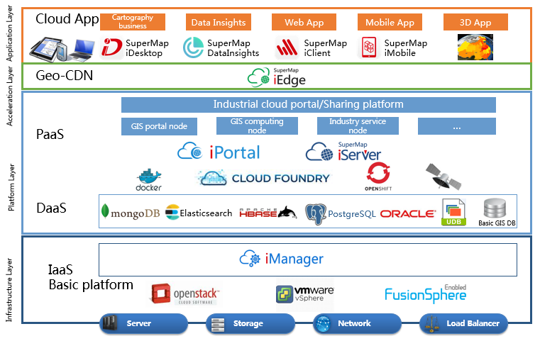 Specifically, the powerful cloud GIS platform is built quickly through the GIS cloud manager iManager, the cloud GIS portal platform iPortal, the cloud GIS application server iServer, and the cloud GIS distribution server iEdge. With multiple terminals of iMobile, iClient, iDesktop, iObjects, SuperMap GIS 10i helps to build a variety of cross-platform client applications, to connect to GIS service platform and SuperMap cloud service in a variety of devices. Multiple terminal application can use GIS data and services in cloud GIS platform, display geographic information in multiple terminals, and collect, produce and upload data to cloud platform.