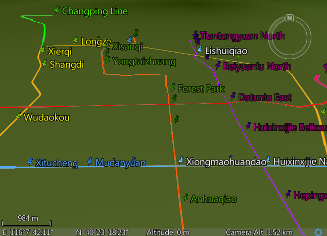 The layer types supported by KML include: images, geometric objects (points, lines, or regions), models, etc. SuperMap 3D supports displaying geographical information recorded in a KML file in a 3D scene as a 3D KML layer. That is, information recorded in a KML file is added on the globe in a 3D scene according to the coordinate information.