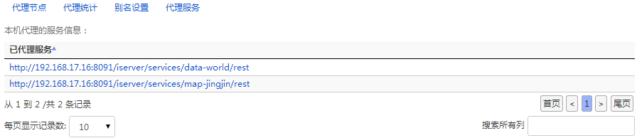 In the SuperMap iEdge proxy service page, you can view all the services that iEdge has represented. You can click "Service", "Agent" and "Proxy Service" on the iEdge Service Management page to enter the proxy service page.