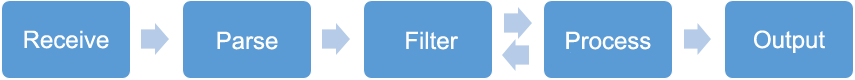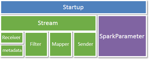 The stream processing model consists of four parts: Receiver, Filter, Mapper, and Sender. Each part as a node, can be connected and merged together to build a real-time data processing stream: Stream. In addition to Stream, there are some auxiliary parameters as the operating conditions of the entire service, which is stored together in the startup parameter type-Startup. The processing model is as follows:
