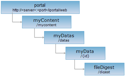 Implement the GET request on the fileDigest resource http://localhost:8090/iportal/web/mycontent/datas/1/digest.rjson to return the result in rjson format: