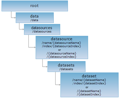 Note: 1. The dataset resource supports the above 4 ways of URIs, URI1 and URI3 uses dataset name to identify resources, URI2 and URI4 uses dataset index identify resource; 2. When <datasource_uri> in <datasets_uri> uses URI1 or URI2, dataset can only use URI2 or URI2, When <datasource_uri> in <datasets_uri> uses URI3 or URI4, dataset can only use URI3 or URI4.