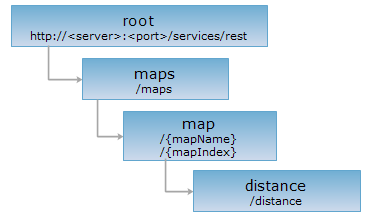 The distance resource, as a child resource of the map resource, is an algorithm resource for measuring the distance on the map according to the given parameters--point2Ds & unit, which must be included in the URI, and cannot be put inside the request body.