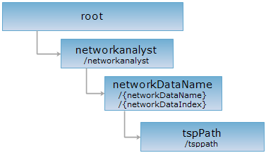 The TSPPath resource represents the traveling salesmen analysis function. With parameters properly set, a GET request can be performed on the TSPPath resource to retrieve a traveling salesmen analysis result.