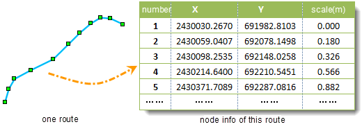 Route: Route is a linear feature (such as the road, street, river, pipe, etc.) that is characterized of ID and measure system, and it has a position ID and a measure value (generally used M to describe it like mileage).