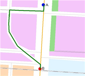Service area analysis: Calculates the service area for a specified point in the network. For instance, we can calculate the 30-minute service area for a point in the network. In this result service area, the time cost from the point to any point in the service area will be less than 30 minutes.